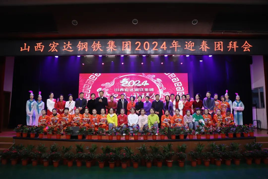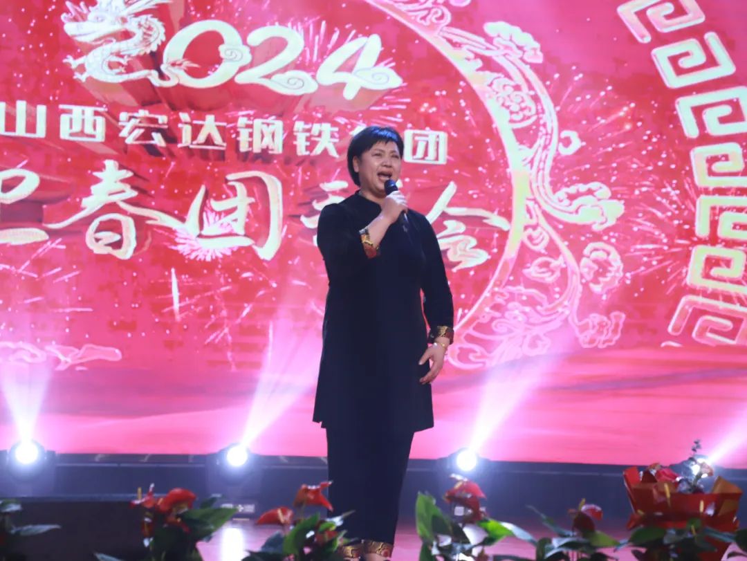 当天的迎春团拜会文艺节目,由来自运城市、河津市的著名歌唱、戏曲演员和集团员工联袂呈现,歌曲、舞蹈、戏曲、歌伴舞等文艺表演形式精彩纷呈,全场热情互动,动感的舞蹈、欢快的旋律、响彻云霄的歌声,传递出奋进新时代阔步新征程的强劲足音,展现了宏达人热情奔放、团结向上的精神风貌。最后,团拜会在歌伴舞《中华全家福》的歌声中圆满落幕。